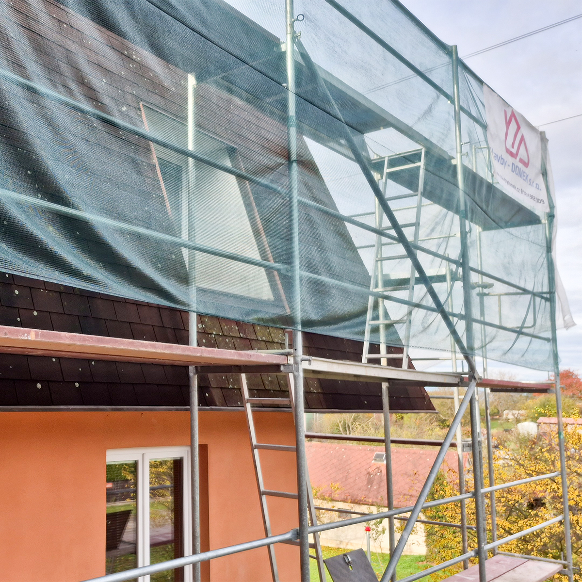 - opravy stávajících podhledů a ostění oken v mansardách (EPS, stěrky, finální silikonová zrnitá omítka)